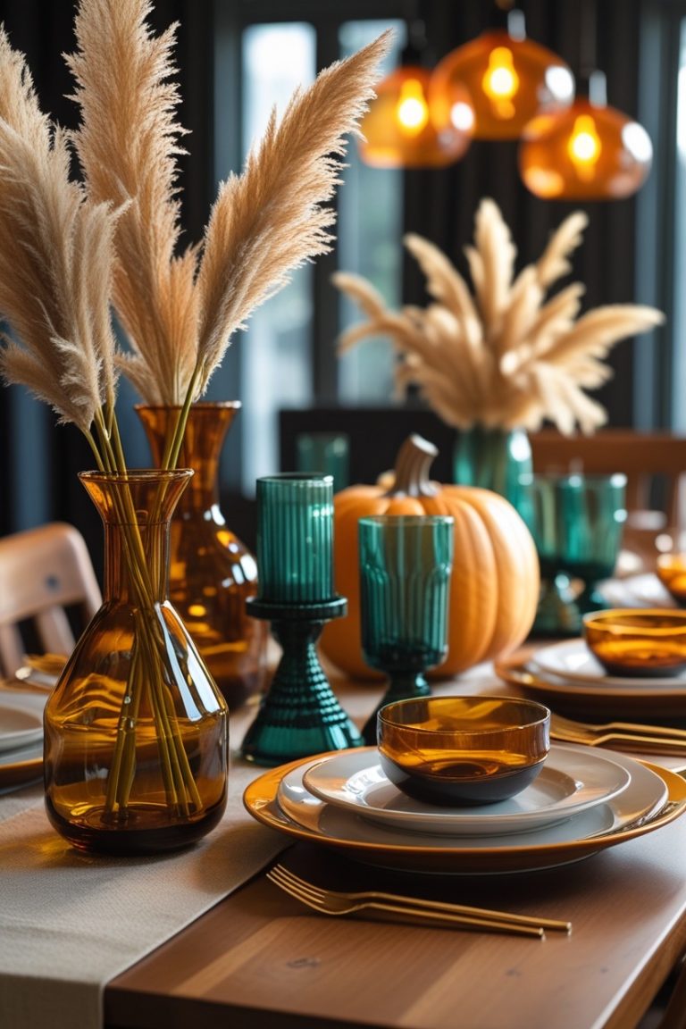 Fill oversized amber glass vases with dried fall branches or pampas grass.