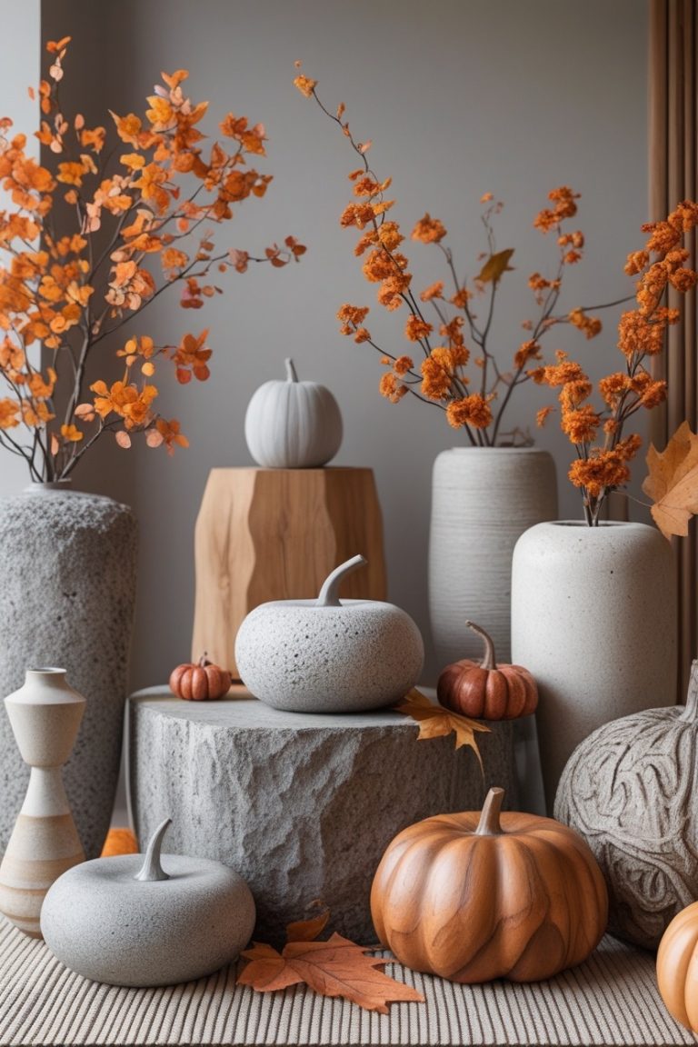Organic Modern Fall decor embraces the beauty of natural textures and modern simplicity, creating a refined yet cozy home. By mixing stone, wood, ceramics, and earthy tones, these 21 ideasbring sophistication and warmth to every corner of your house this autumn.