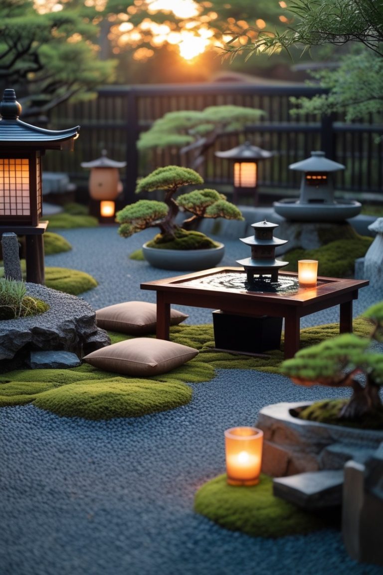 Add floating candles or lanterns around the water feature for dreamy twilight tea moments β where reflection meets serenity.