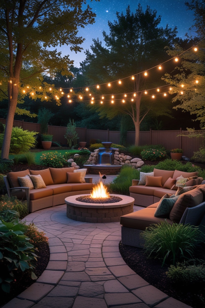 Mix string lights, lanterns, and solar stakes for magical nighttime charm.