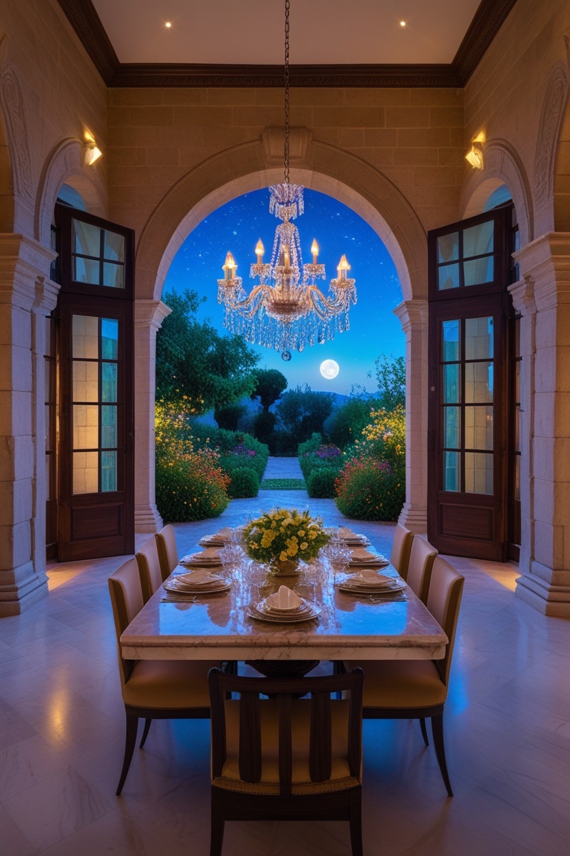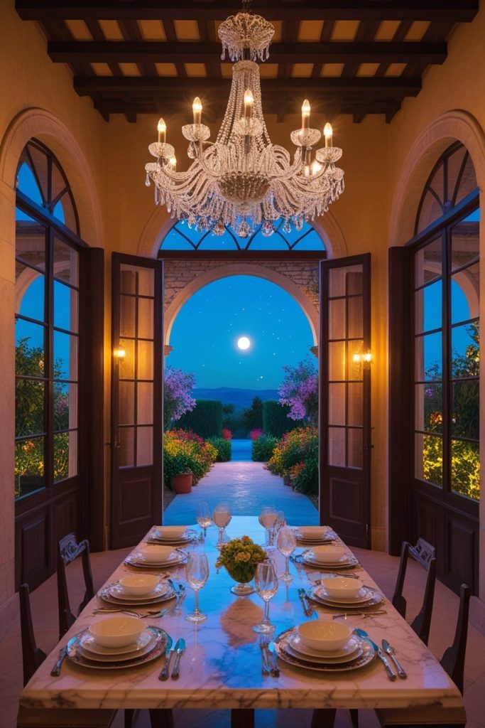 Use layered lighting — chandeliers for dining, spotlights for work zones, and soft glow LEDs for ambiance.
